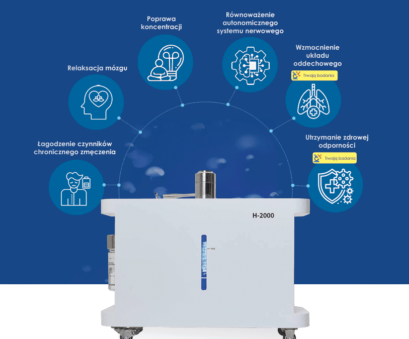 Wspomaga leczenie – liczne badania wskazują, że inhalacja wodorem może wspierać procesy zdrowienia przy stanach zapalnych, cukrzycy, chorobach serca, demencji, a także hamować namnażanie komórek rakowych poprzez przywracanie równowagi oksydacyjno-redukcyjnej.
